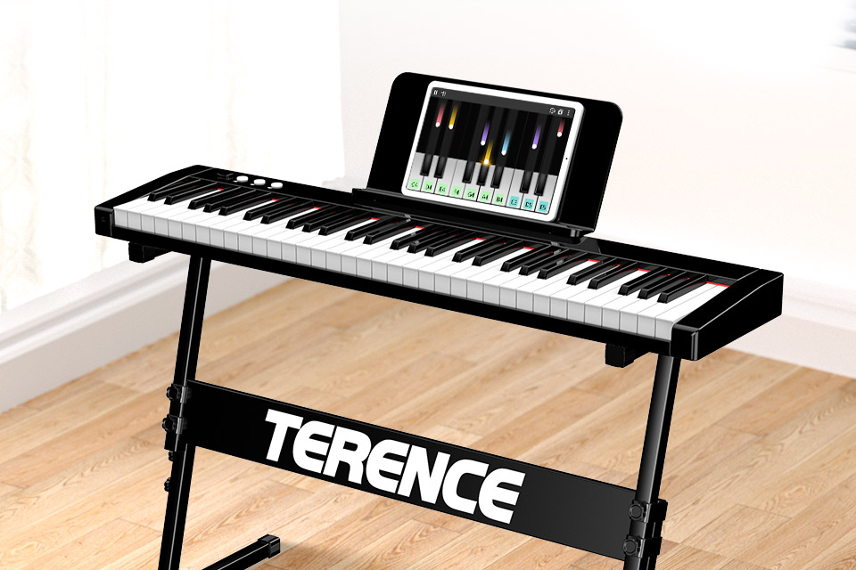 | 智能發(fā)光琴鍵會(huì)亮燈指引,就算你指法、五線譜都不懂,只要跟燈彈奏,可以快速熟悉鍵位立馬彈出動(dòng)人的旋律。 |